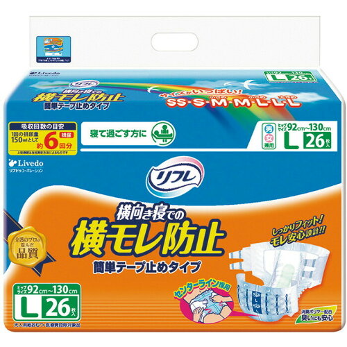 リブドゥコーポレーション リフレ 簡単テープ止めタイプ横モレ防止 L 900cc 92〜130cm 26枚 大人のおむつ 大人のオムツ