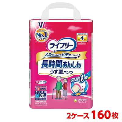 ユニチャーム ライフリー 長時間安心うす型パンツ M 2ケース 160枚 (20枚入×8袋)