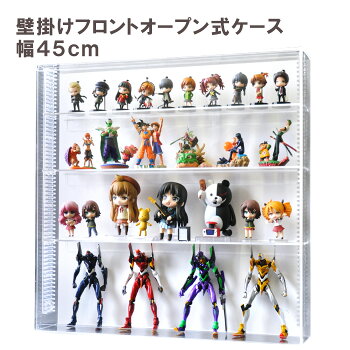 【 薄型 壁掛け 可動棚 背面白 幅45cm 】 開閉に場所を取らない♪フロントオープン式コレクションケース/フィギュアケース